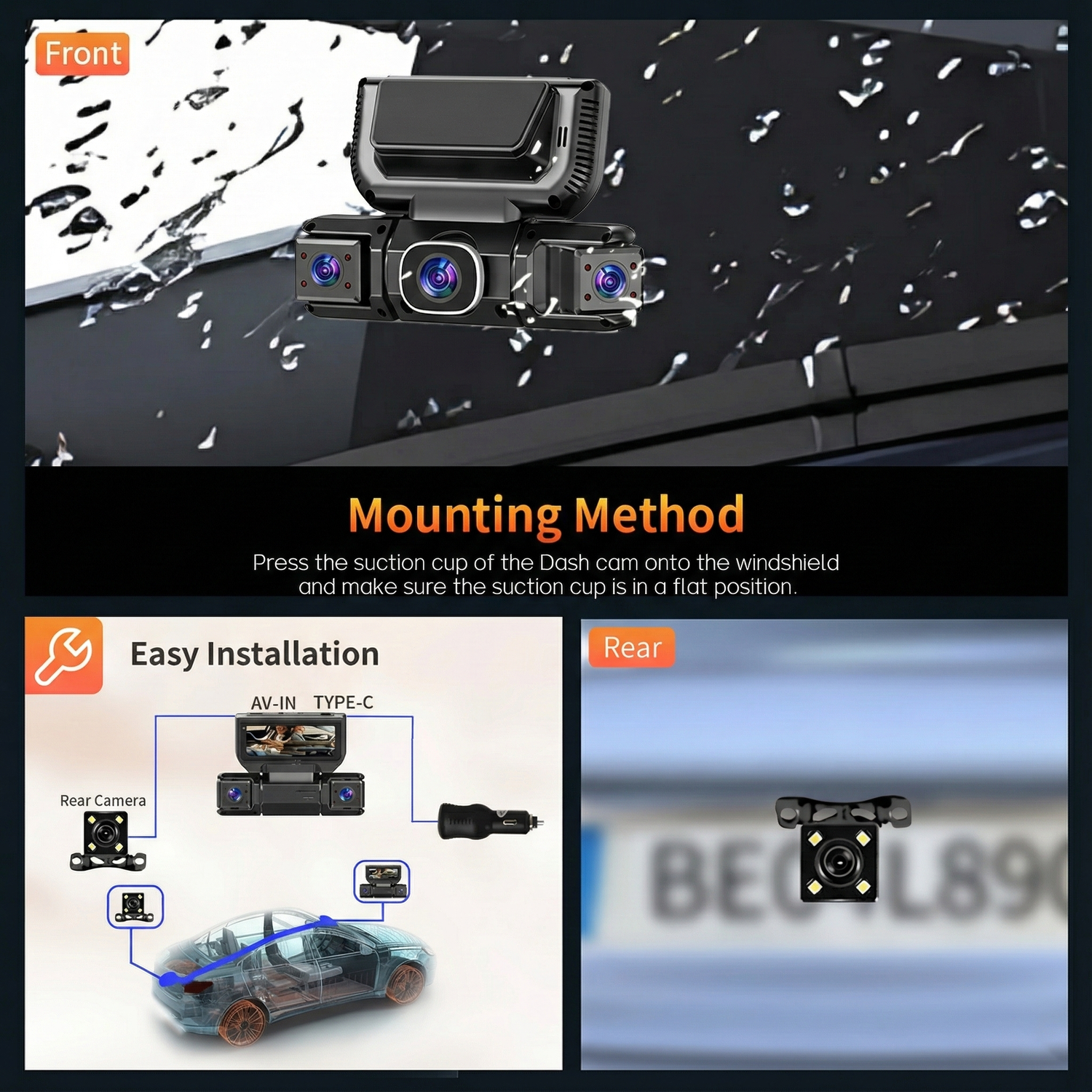 - Front: Crystal clear FHD 1080P with a massive 170° Wide Angle lens.