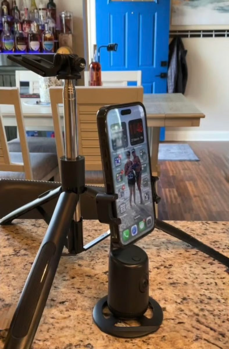 Equipped with smart 360° AI recognition, this tripod keeps your face perfectly centered—hands-free and hassle-free video every time!